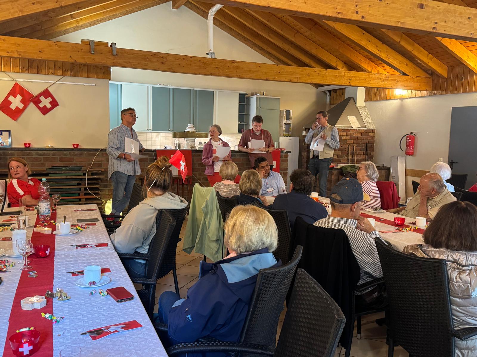 Der Schweizer Club traf sich am 2. August zur traditionellen Bundesfeier und genoss einen Tag voller guter Laune und Gemeinschaft. Das Wetter zeigte sich von seiner besten Seite, sodass alle Programmpunkte wie vorgesehen stattfinden konnten. Besonders beliebt war das Schweizer Gruppen-Quiz, bei dem mit viel Ehrgeiz und Spaß um die richtigen Antworten gerätselt wurde – als kleine Belohnung winkten die farbenfrohen Sugus-Bonbons.