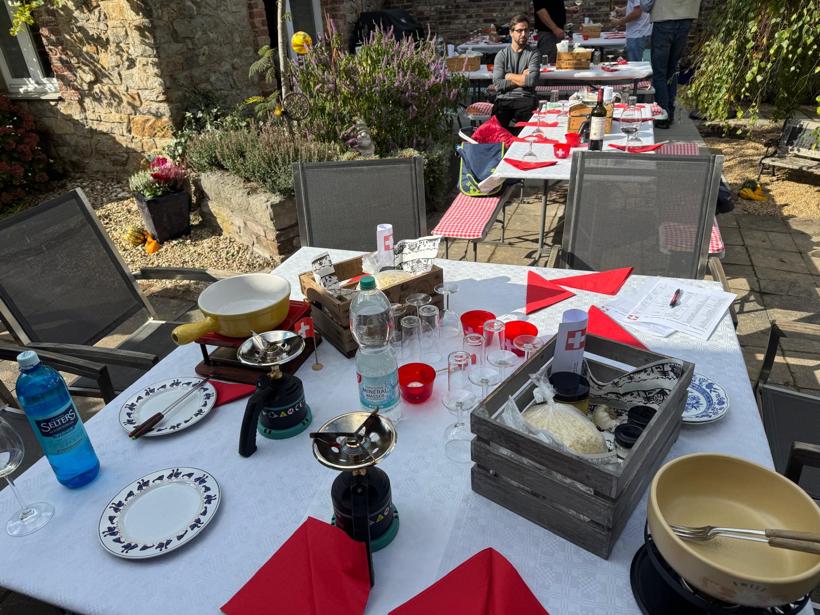 Was für ein herrlicher Nachmittag! Am 27.09.2025 traf sich der Schweizer Club Aachen zum traditionellen Käsefondue-Essen – diesmal bei bestem Herbstwetter im gemütlichen Garten eines Clubmitglieds in Aachen-Brand.