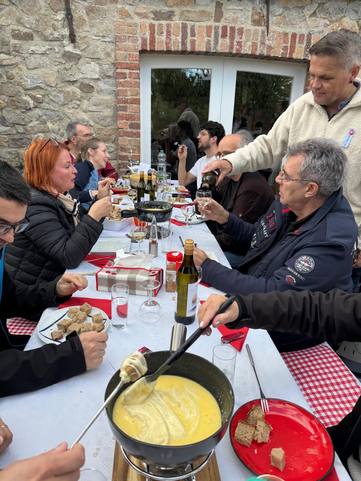 Zwischen dampfenden Caquelons, frischem Brot und einem oder zwei Glas Weißwein entstand schnell die vertraute, herzliche Stimmung, die unser Club so besonders macht. Das Käsefondue-Essen ist mittlerweile ein fester Bestandteil unseres Vereinsjahres – und für viele nicht mehr wegzudenken.